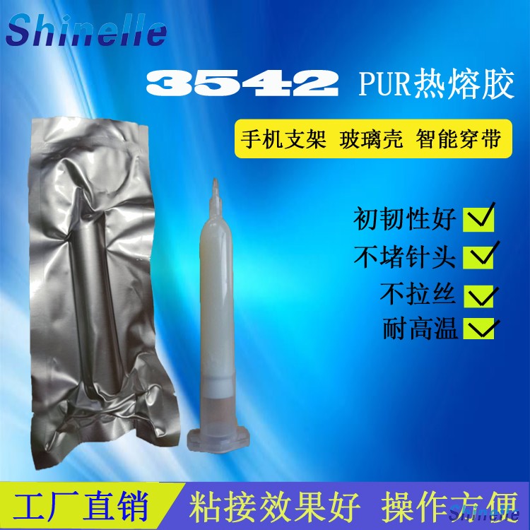 PUR 胶黏剂即聚亚安酯PUR热熔胶又称湿气固化反应型聚氨酯PUR热熔胶是带有氨酯键(NH-CO -O)的高分子化合物,是一种刚柔兼有的热熔胶,熔点和耐寒点跨度大,熔点可达到为180℃,耐寒点为-40℃。