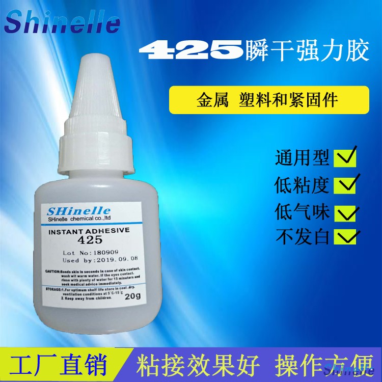 瞬干胶的种类很多,不同的型号应用到不同的生产生活中。如瞬干胶460低气味,低白化型,无白化,低粘度,低气味。粘接后零件洁净无玷污。瞬干胶410,高强度,填充大的间隙。